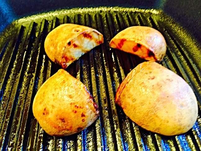 - I grilled the Bun, Eggplant, Portabello and Tomato before hand on a cast iron skillet.