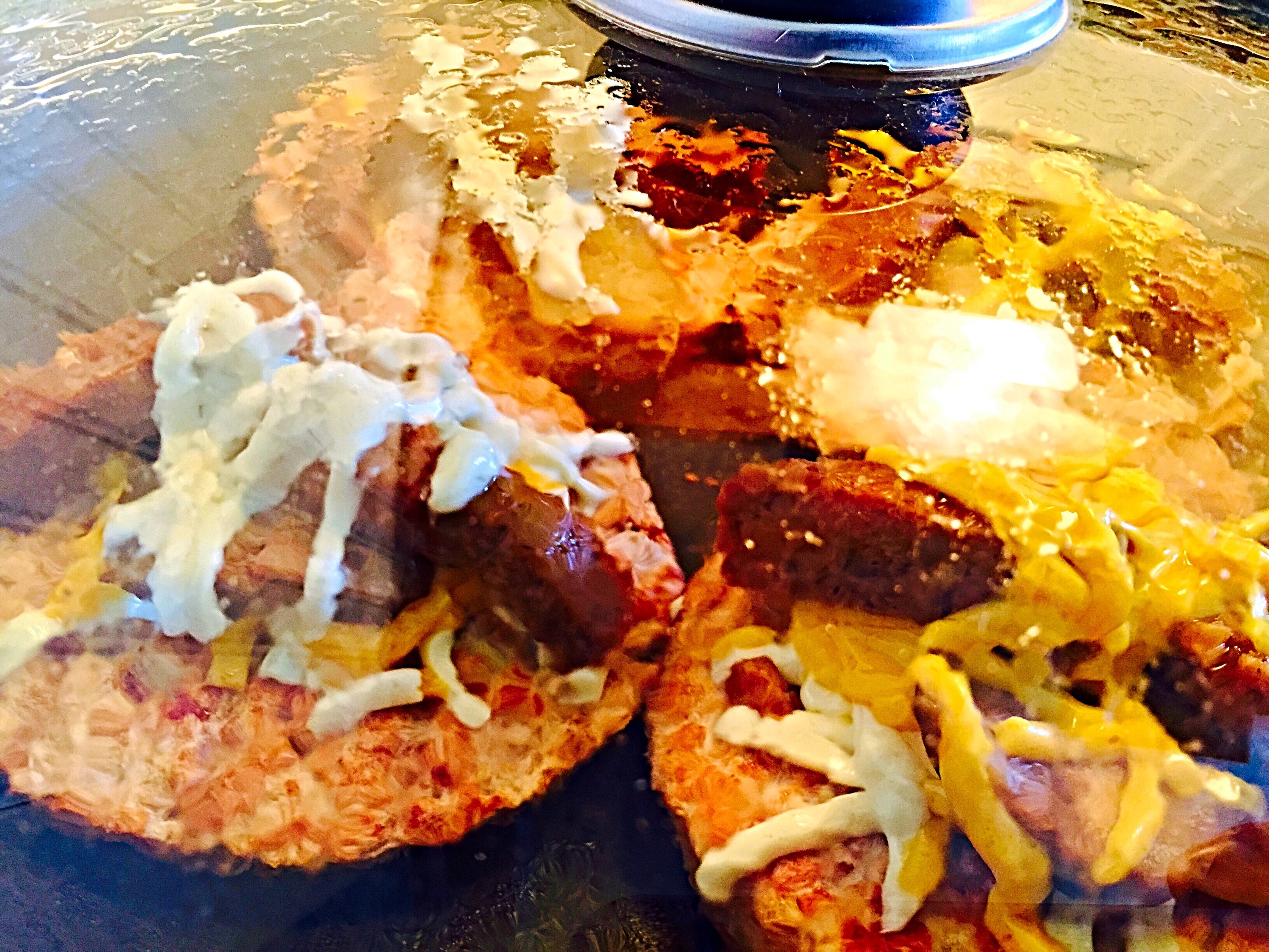 - I put as much Daiya possible on top of this erected edible Ⓥ tower of power and BROILED