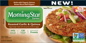- Morning Star Roasted Garlic & Quinoa, Vegan & NONGMO baked and diced