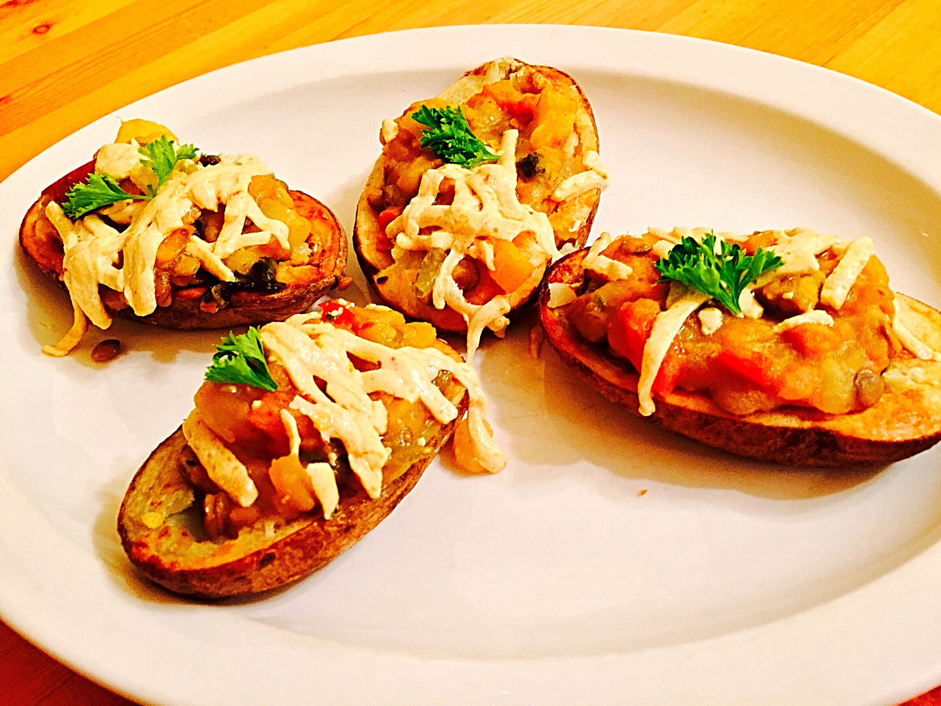 And these are a concept of eating Lentili without utensils, being Potato bowls filled with Lentili and Daiya!