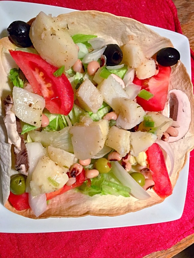 I threw in all sorts of leftover veggies consisting of: Onion, Tomato, Cucumber, Scallions, Celery, Parsley, Tofu, Tempeh, Japonica Rice and Garlic. I seasoned this Soup with Sugar, SeaSalt, Pepper, Cayenne, BalsamicVinegar and Garlic Powder.