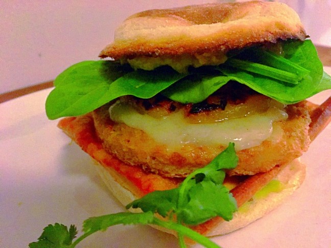 Tofutti was the theme of the sandwich. Guacamole, Boca, Tofutti and Spinach combined with a sweet grilled Pineapple, I would assume, tastes like Hawaii.