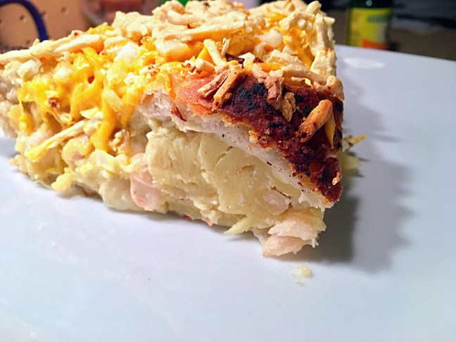 I’m a lazy ass usually. I used dough in a can. It’s good, quick and easy. Earth Balance ‘butter’ was used to ‘butter’ my pan followed by the unleashed dough. Whiteout Chili MacNDaiya engulfed the center of that panned dough and was baked slowly. Wrapped in aluminum foil, I stored this beauty in the fridge for a later day.
