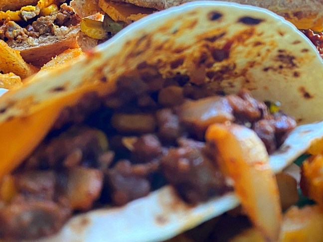 Flour Tortillas were baked while Iceberg & Romaine Lettuce was mixed with sliced Spinach, Hummus and Pico de Gallo (Tomato, Cilantro, Lime Juice, Onion & Jalapeño).