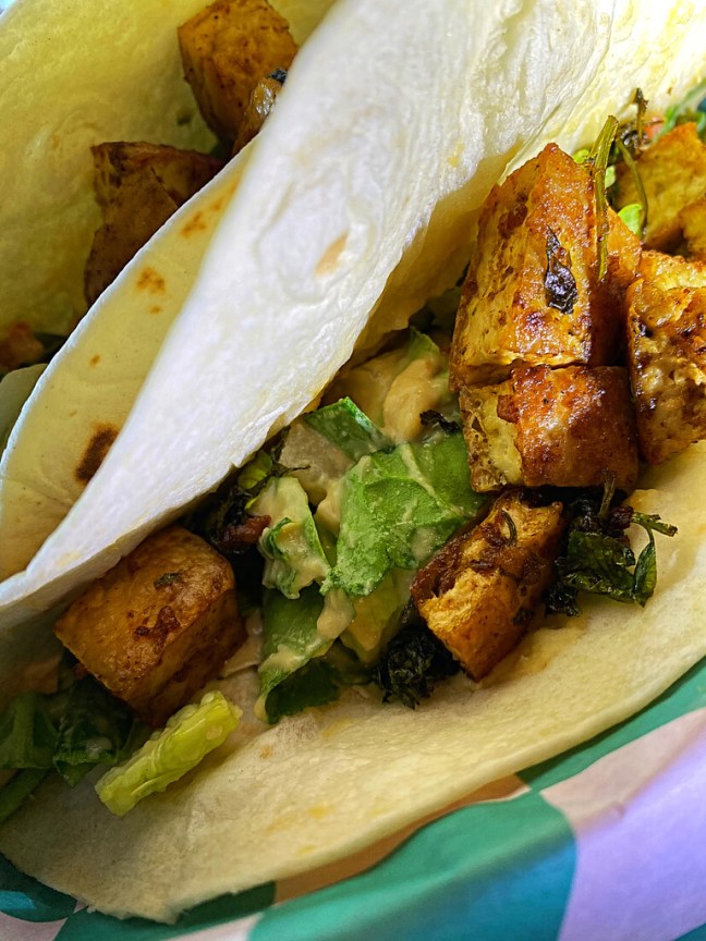 Tofu was baked on a griddle before being tossed with light Olive Oil and Hot Sauce.