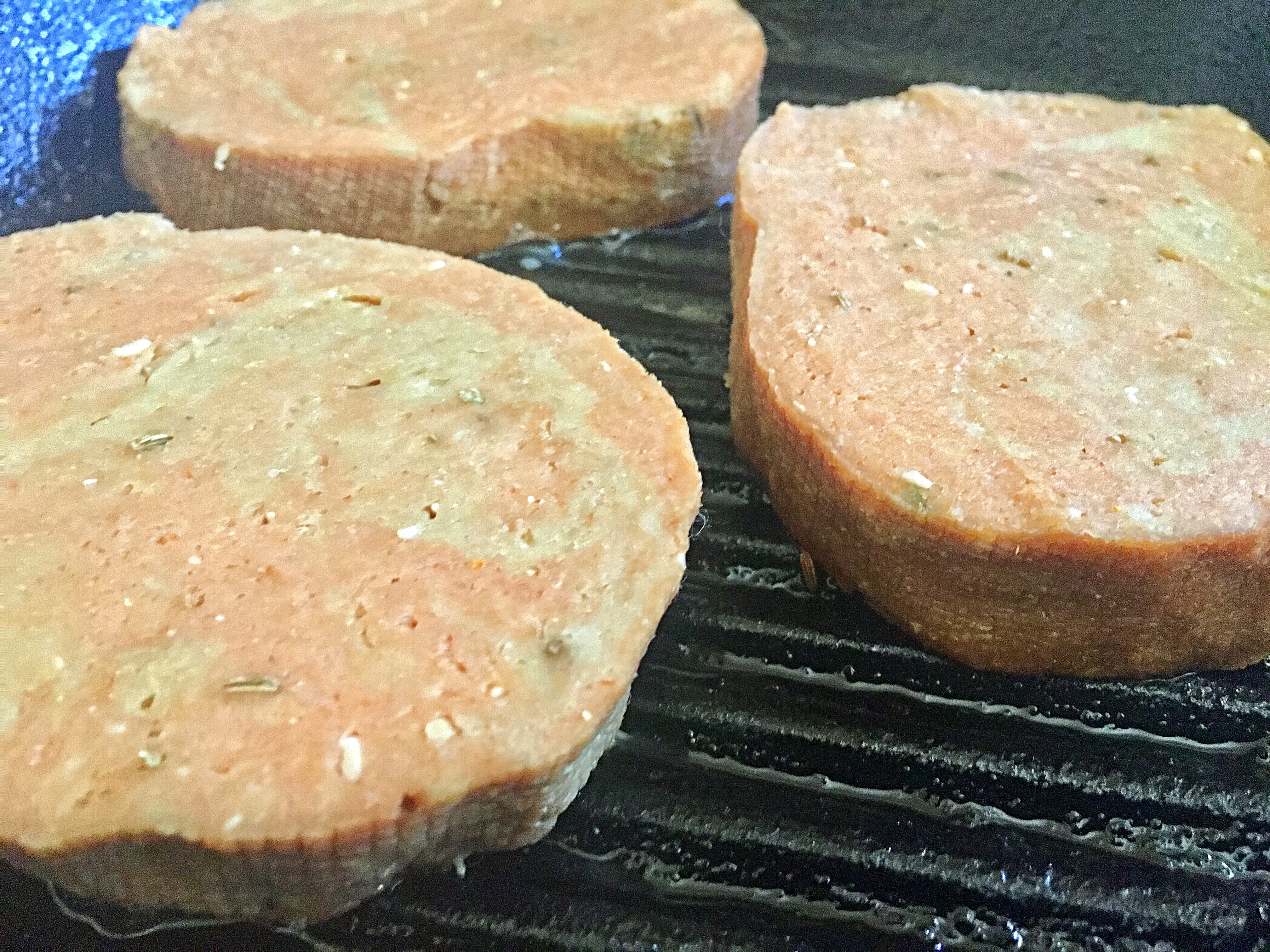 Corn Tortillas were sandwiched with Ⓥegan Gouda, Beyond Meat, Mushroom greatness and Pico de Gallo. The Tortilla stuffed Pi was pan fried in Olive Oil.