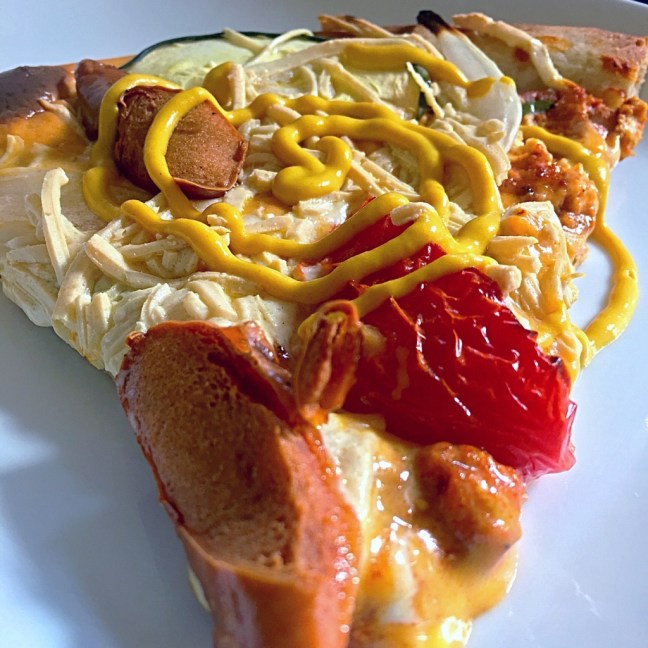 I made a Daiya Cheese sandwich with two separate Grilled Daiya sandwiches capturing Lettuce, Tomato, Onion and Guacamole. With some evolved Soup materials on the side:)