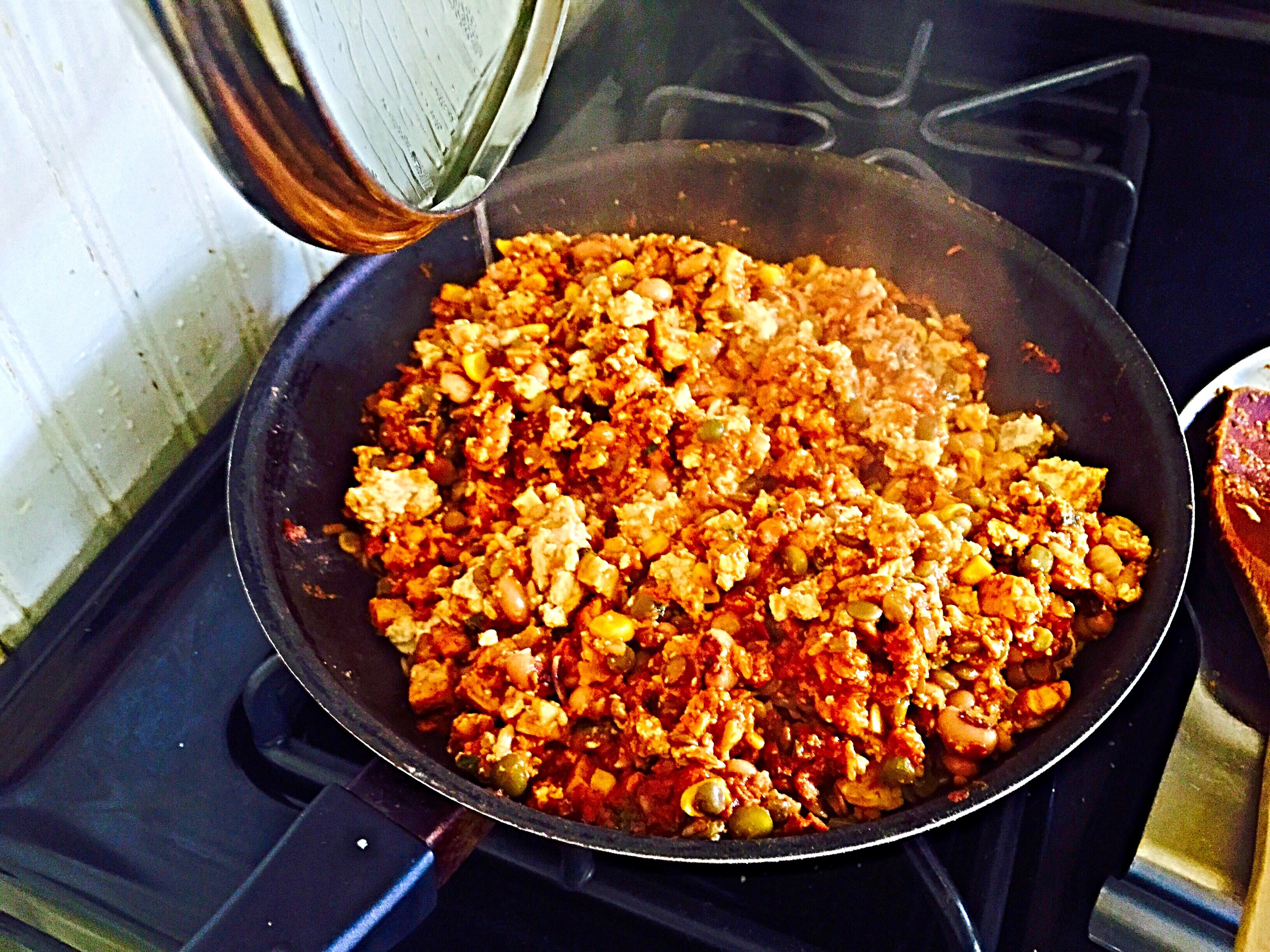 I ain’t here to give cooking lessons. Use your imagination and have FUN! I did also make kick-ass Vegan Corn Bread. Seriously, play with your food!