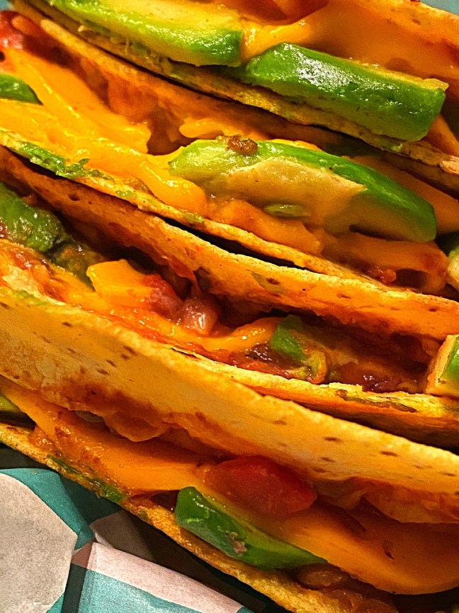 Topped with Daiya halves and sliced Avocado, these tortillas were folded and seared on both sides.