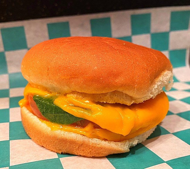 The Bun was lathered with Earth Balance ‘butter’ and panfried before spreading Meatless Sauce on the fried Bun. Combining with texture and exploding with flavor, this sandwich was quick, easy and fun.